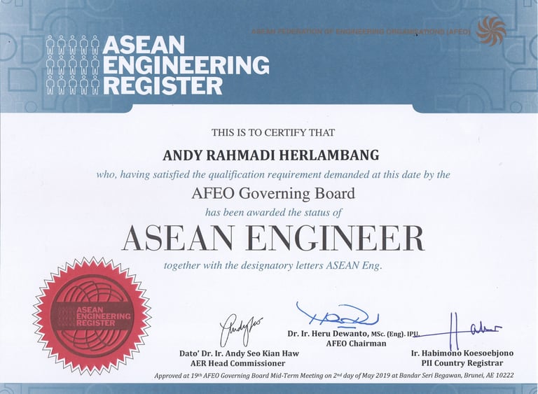 ASEAN Engineer (ASEAN Eng) adalah gelar profesional yang sangat bernilai di kawasan Asia Tenggara. Gelar ini diberikan kepada insinyur yang berhasil memenuhi kriteria pendidikan, pengalaman, dan kompetensi teknik sesuai dengan standar yang ditetapkan oleh ASEAN Federation of Engineering Organisations (AFEO). Dengan semakin meningkatnya kolaborasi antarnegara anggota ASEAN dalam bidang teknik, penting untuk meninjau lebih lanjut mengenai makna dan manfaat dari gelar ini.